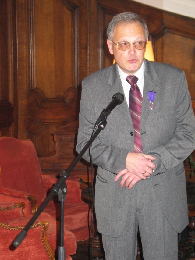 En vous décernant ces insignes des Palmes Académiques, créées par Napoléon, nous relions la tradition et la modernité, parce que le français trouve ainsi sa place dans l’ouverture de votre pays et son accession à l’Europe, parce l’originalité de votre usage de la francophonie renouvelle l’image du français. 2003 fut une année importante dans l'histoire des relations de la Bulgarie avec le monde de la Francophonie, et les filières francophones sont une des plus belles et des plus concrètes réalisations de la francophonie bulgare. L’Association, comme les filières, oeuvrent toujours pour faire du français une langue moderne, utile et professionnelle, c’est à dire une langue qui vit. Beaucoup d'entre vous nous font l'honneur de leur présence ce soir à double titre : à la fois éminents spécialistes du français et de la France mais encore membres de longue date de la section bulgare de l'AMOPA. Saluons, à cette occasion, Monsieur le Professeur Stoyan ATANASSOV, président de la section bulgare de l'AMOPA depuis toujours et récemment élu directeur du département d'études françaises de l'Université St Clément d'Ohrid de Sofia, et qui à travers ses fonctions successives est l’un de ceux qui contribue à cette modernisation que nous saluons aujourd’hui. Faisons honneur ce soir aux nouveaux chevaliers de l'Ordre des Palmes Académiques, à leur travail, à leur charisme, à leur amour du français et à leurs aspirations à moderniser leur société